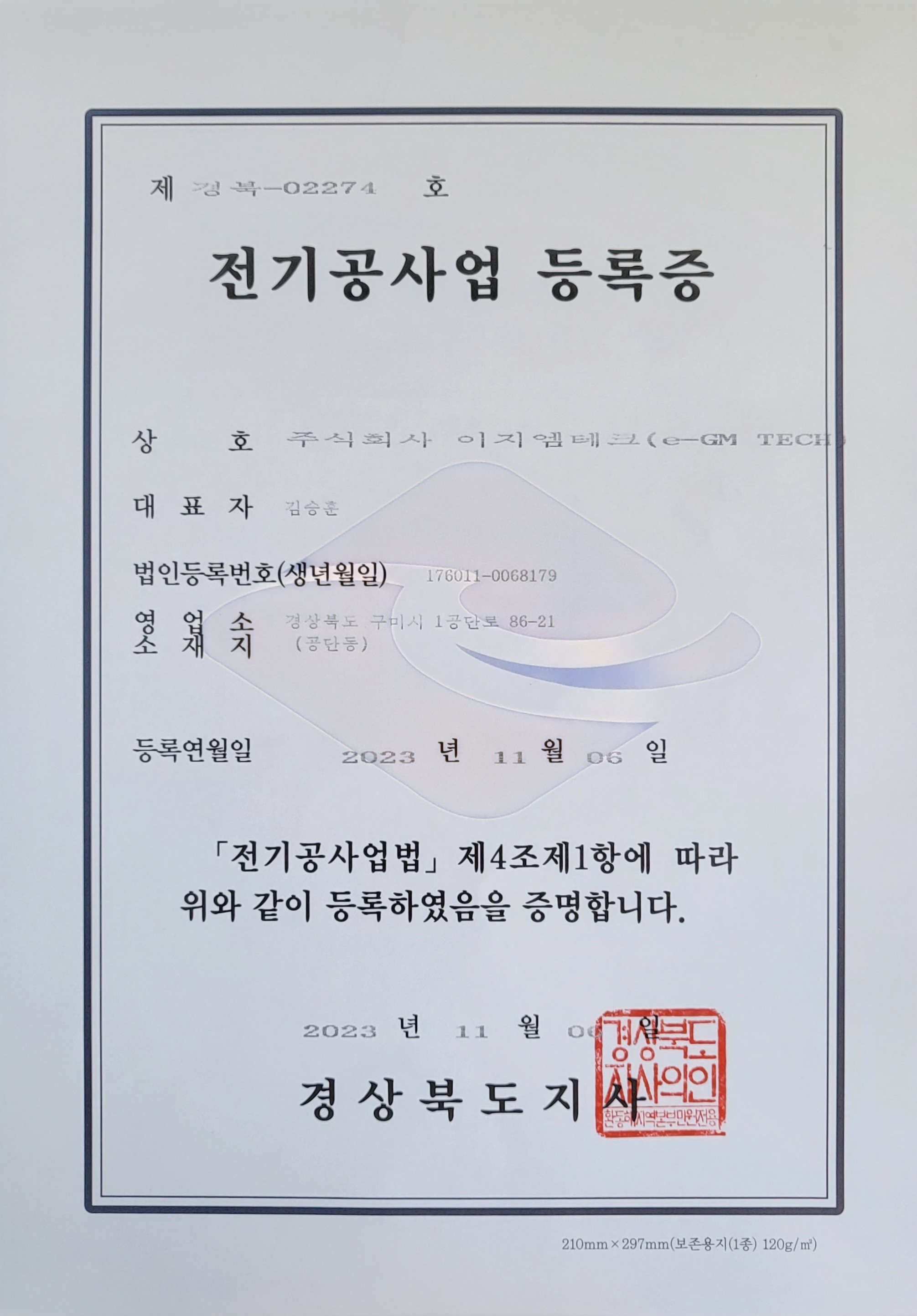전기공사업 등록증 인증서 전기공사업 등록증 pdf URL : http://stellon.kr/sub/sub.php?catCode=000000010004&num=787 첨부파일 : KakaoTalk_20240219_105723932.jpg 태그 : 목록