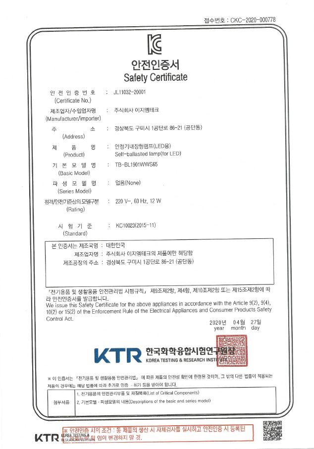 - 사용온도 : -20℃ ~ 40℃