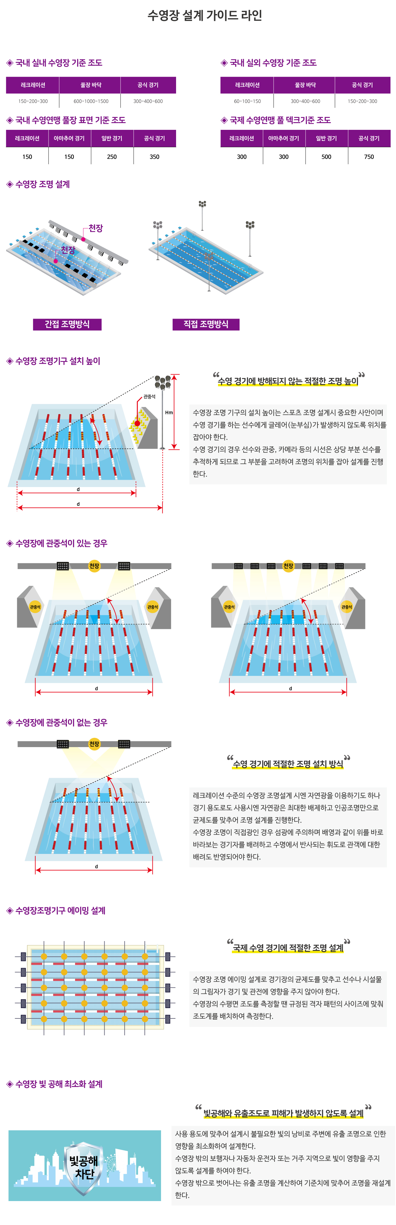 수영장 설계 가이드 라인 스포츠/ 대공간 수영장 설계 가이드 라인 pdf URL : http://stellon.kr/sub/sub.php?catCode=000000030002&num=747 관련 정보 [설치사례]국립 안동대학교 수영장 방수투광기 설치 [제품링크]국내산 스포츠 투광등 [제품링크]투광등 150W [제품링크]투광등 100W [쇼핑몰]투광등 150W 첨부파일 : 수영장장설계기준표.jpg 태그 : #AC220V #200W이하 #스포츠 #운동장조명 #LED스포츠조명#체육관조명 #LED방습등 목록