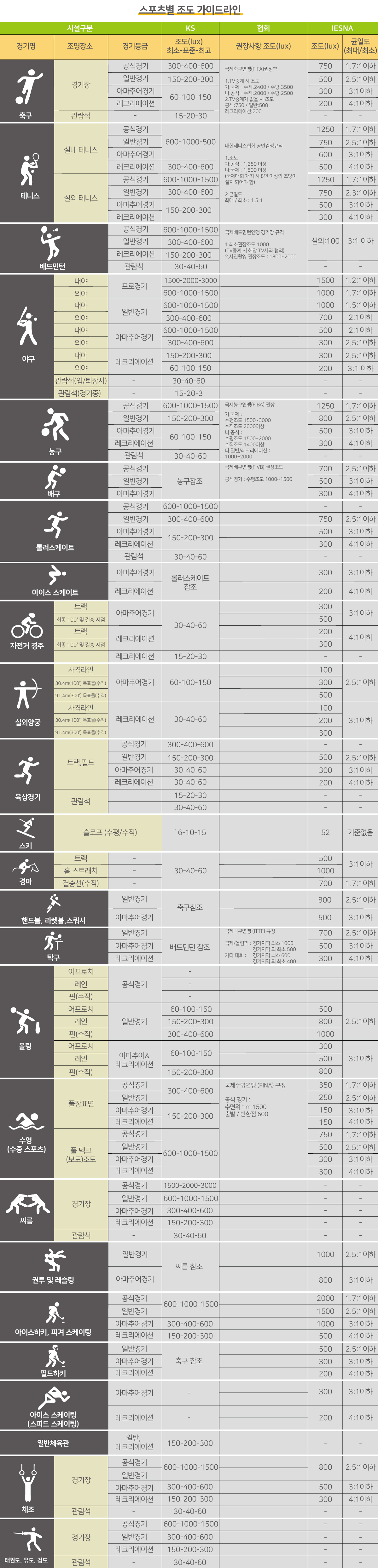 이지엠테크 스포츠별 조도가이드라인 다운로드 이지엠테크 스포츠별 조도가이드라인 pdf URL : http://stellon.kr/sub/sub.php?catCode=000000040002&num=742 아래 첨부 파일을 다운로드 하세요. 첨부파일 : 스포츠별-조도-가이드라인.jpg 태그 : #이지엠테크 # stellon #스탤론 #LED투광기 #체육관조명 #LED스포츠조명 #테니스장조명 #풋살장조명 #배드민턴조명 #운동장조명 #축구장조명 #골프장조명 목록